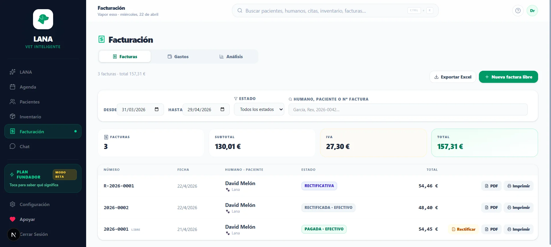 LANA es un sistema de gestión completo — agenda, pacientes, inventario, facturación y asistente IA — diseñado para sustituir herramientas fragmentadas. La migración de datos es asistida y el onboarding está incluido en todos los planes.